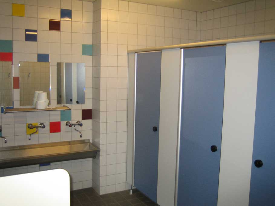 Het toilet gedeelte bevat voor de dames 3 wc's, 2 douches en een grote wasbak. Voor de heren zijn er 2 douches, 2 wc', 2 urinoirs en ook een grote wasbak. Daarnaast is er een invalide toilet met was voorziening.