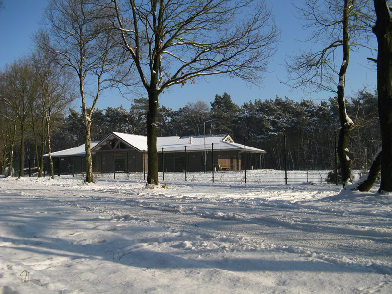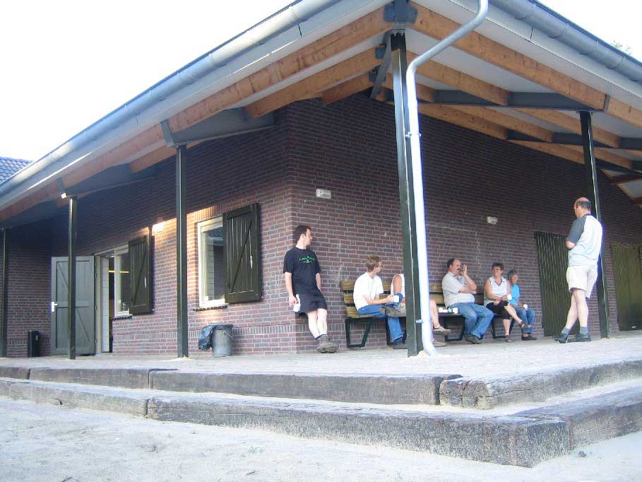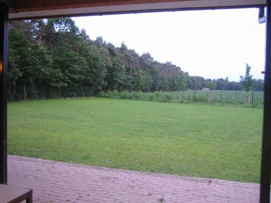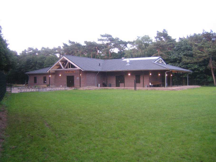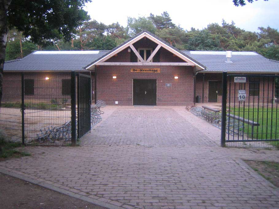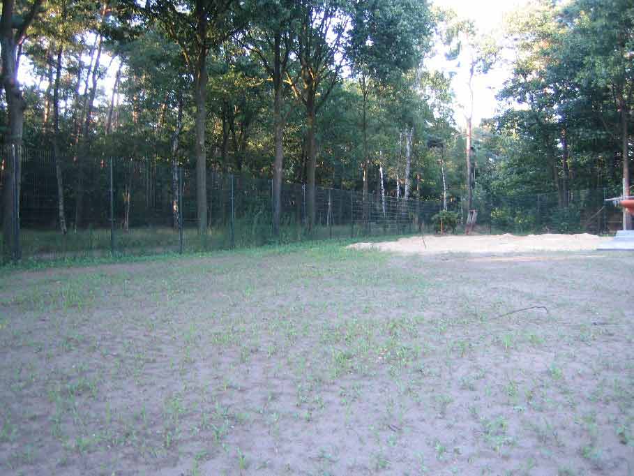 Het grote speelveld is ongeveer 2300m2 groot. Het voledige terrein is omheind door middel van in de omgeving passed hekwerk, welk is voorzien van aan de toegangszeijde 2 grote poorten en aan achterkant een klein looppoortje. Alle poorten zijn afsluitbaar.